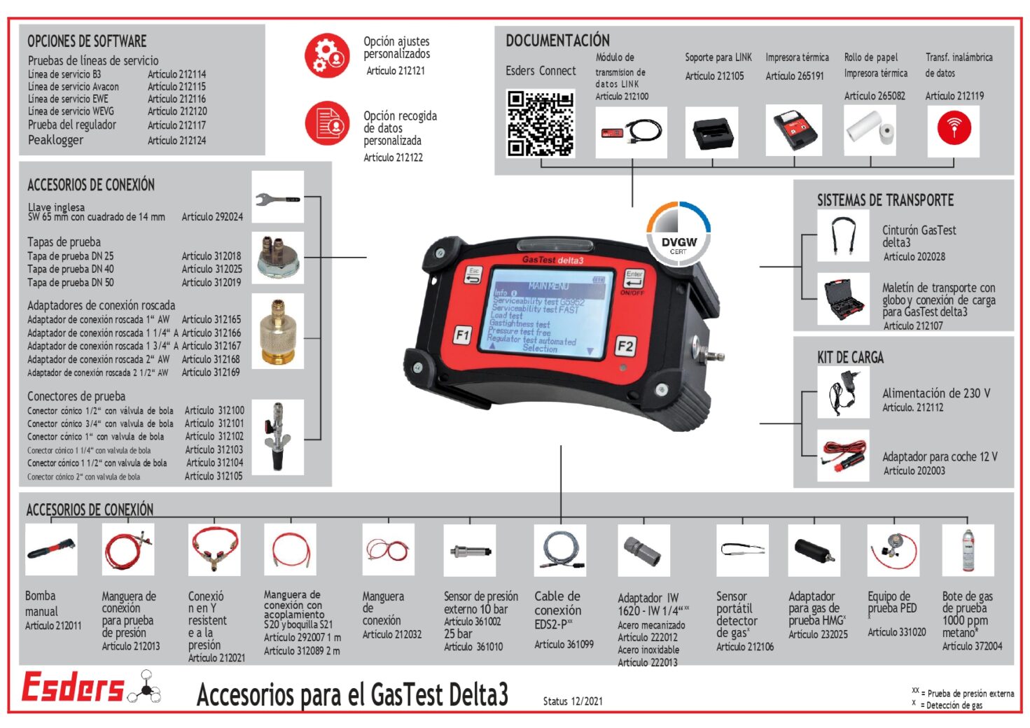 Aquí podrá encontrar una amplia gama de accesorios de conexión y adaptadores para pruebas según TRGI 2018 o DVGW G 495 (A).